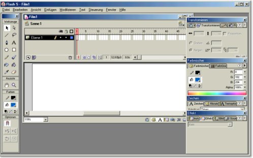 in der später die Flashanimation erstellt wird. Zu erst: Der Arbeitsbereich